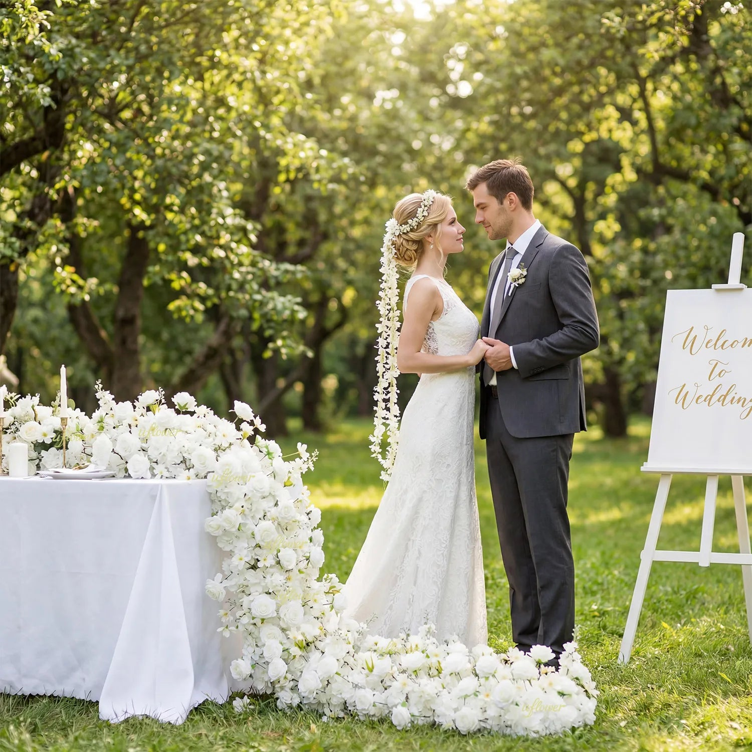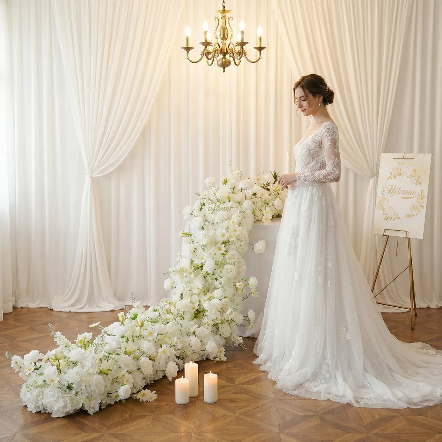 Your wedding deserves decor that feels both timeless and unforgettable. Our Pure White Floral Runner is designed to turn ordinary spaces into breathtaking, romantic backdrops—without the stress of fresh flowers.