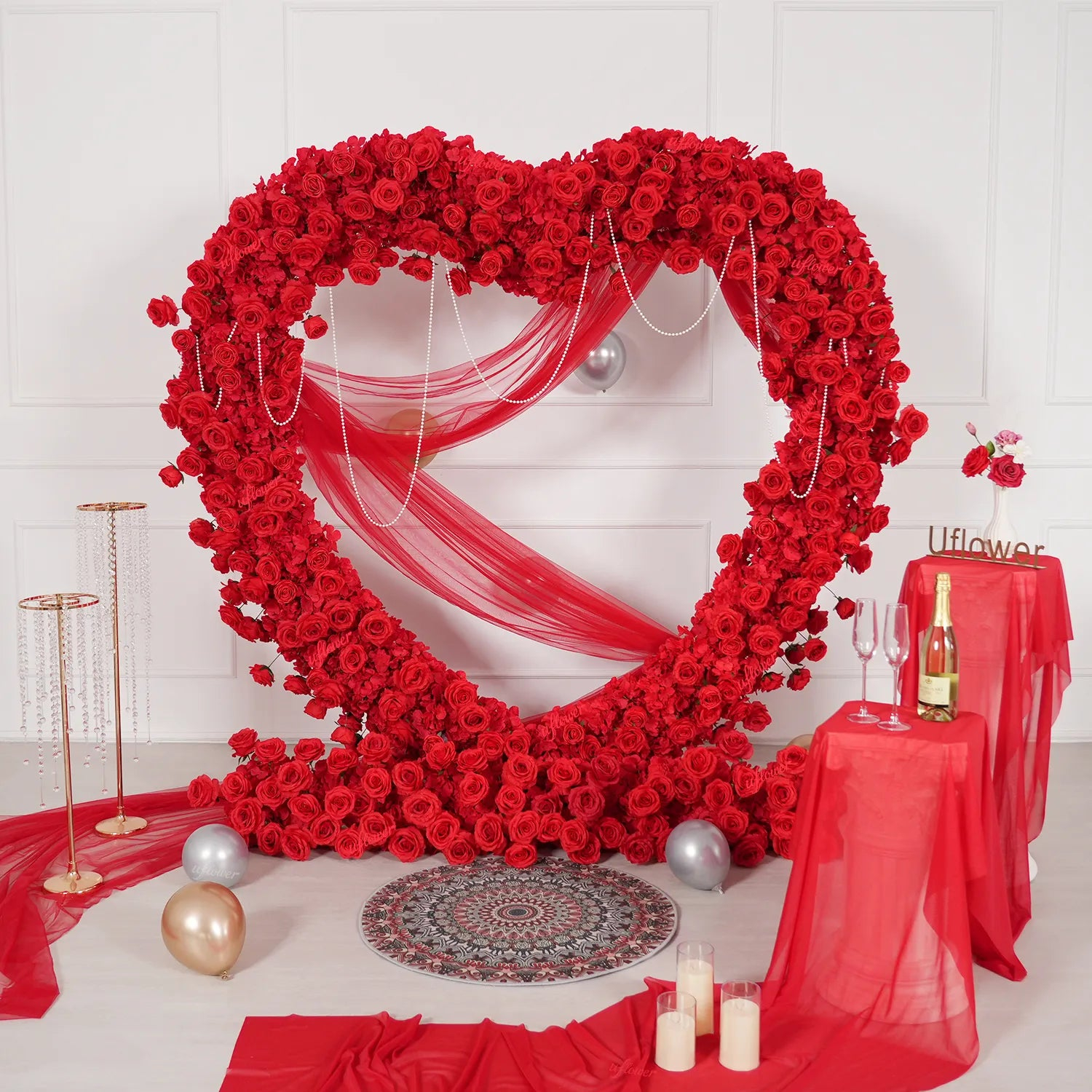 Red Rose Heart-Shaped Artificial Flower Arch | Romantic Wedding Ceremony Backdrop